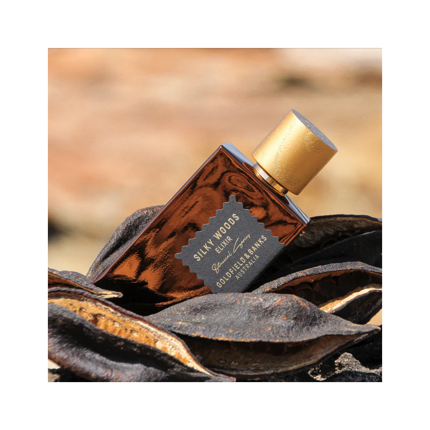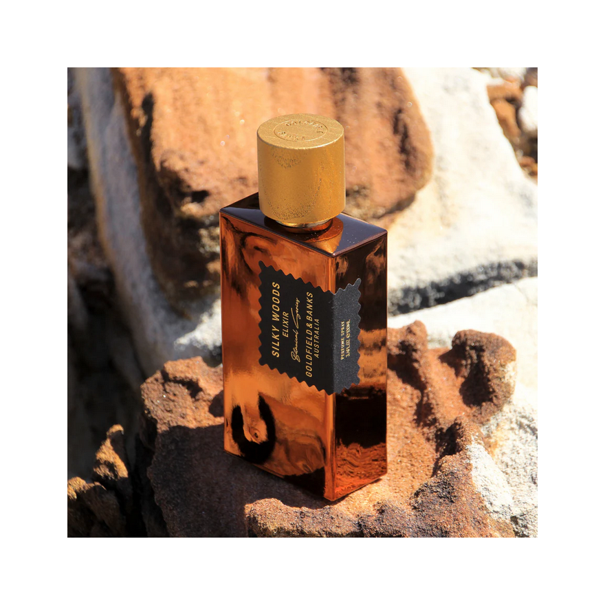 Silky Woods Elixir to aromatyczne, drzewne perfumy inspirowane starożytnym lasem deszczowym Daintree. Tropikalne australijskie drzewo agarowe łączy się z figą, szafranem, irysem, drewnem gwajakowym, wanilią i oud assafi, tworząc mroczną i bogatą kompozycję. Charakteryzuje się luksusową intensywnością i zmysłowością.