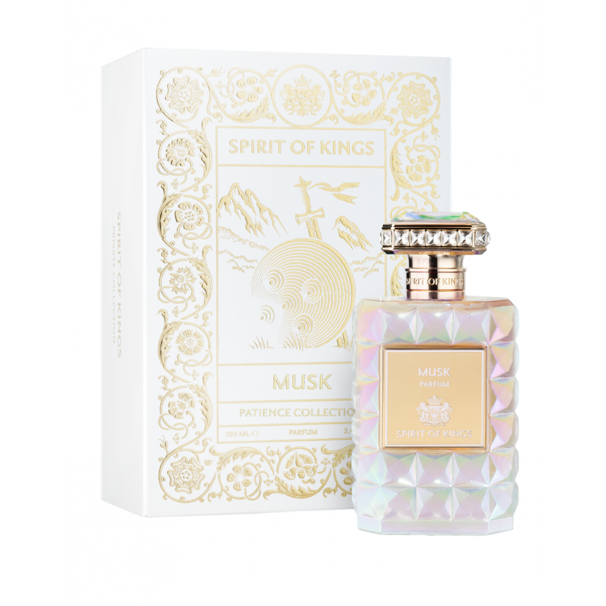 Otwiera się lekkimi aldehydami, konwalią i czystym piżmem, które przywołują skojarzenia ze świeżym lnem i ciepłym, spokojnym powietrzem. W sercu rozkwita róża, fiołek, ylang-ylang i pudrowe akordy, nadając kompozycji subtelną, wyciszającą elegancję. Baza jest miękka i ciepła, otulając skórę wyrafinowanym komfortem. Musk nie został stworzony po to, by imponować, lecz aby koił, uspokajał i trwał przy swoim właścicielu. Zapach pochodzi z najnowszej kolekcji ekskluzywnych perfum Spirit Of Kings – Patience Collection, którą wyróżnia bardzo wysokie, 30-procentowe stężenie olejków zapachowych, imponująca projekcja oraz najwyższa jakość wykonania. Flakony są starannie zdobione, a każdy zapach zapakowano w eleganckie, luksusowe pudełko.